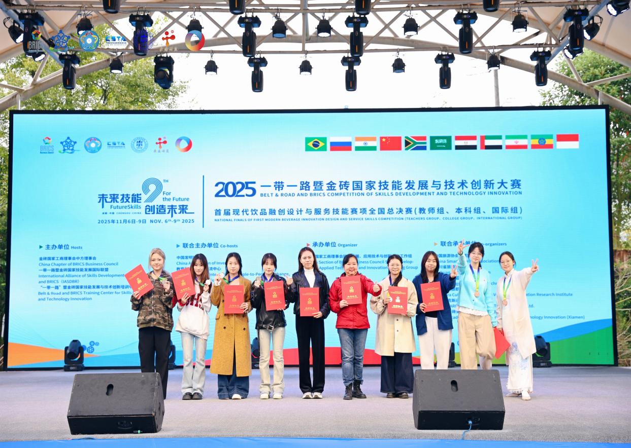 11月6日至9日,2025“一带一路”暨金砖国家技能发展与技术创新大赛首届现代饮品融创设计与服务技能赛项全国总决赛在四川省双流区四川旅游学校隆重举行。学校管理学院两支参赛队伍表现优异,分别斩获二等奖和三等奖,学校获评“优秀组织奖”。