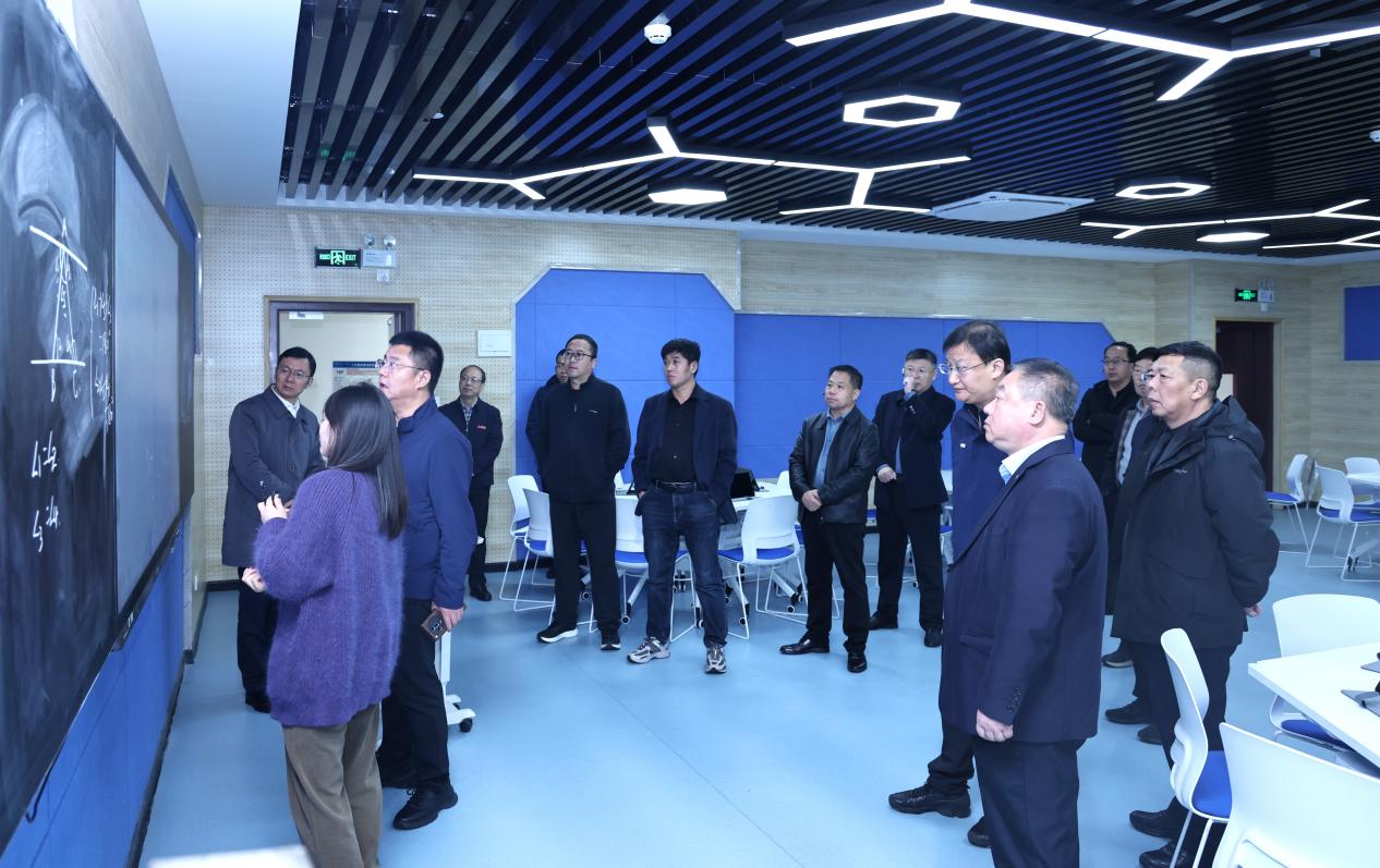 为深化区域教育交流,推动教育事业高质量发展,11月18日上午,山东省乐陵市教体局副局长石猛、李学武以及乐陵市各中小学校长及骨干教师组成的教育考察团一行,来校进行深入考察与交流。校长周光明,副董事长、执行校长曹勇,校长助理张新乐陪同。