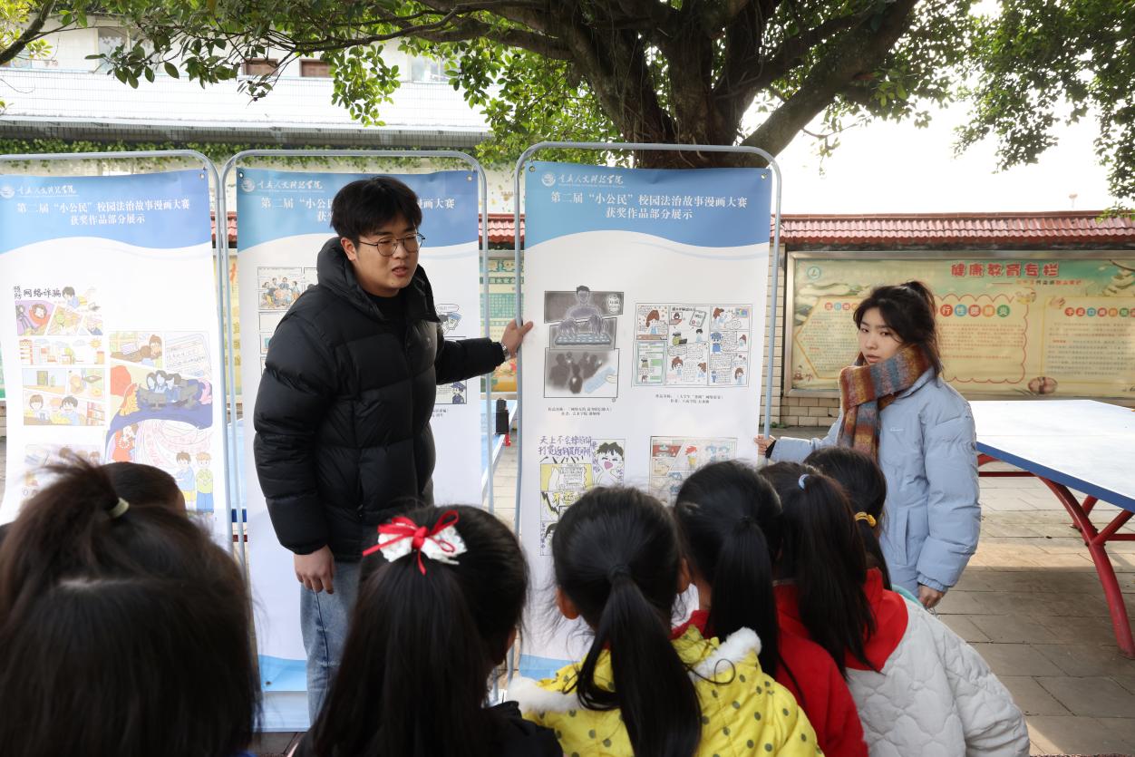 马克思主义学院(政治与法律学院)结合学校近期普法宣传活动主题,整合课堂教学、专业实践等资源,组建专业化普法志愿服务队伍,设置法治漫画展示、游戏互动等普法游园活动,通过小朋友们喜闻乐见的方式宣传了法律知识,引导青少年学法、懂法、守法,推动法治文化扎根小学校园,帮助青少年健康成长。艺术学院学生带来的合唱《我乘着风飞过来》和独舞《易安醉》,获得了现场师生的阵阵好评。