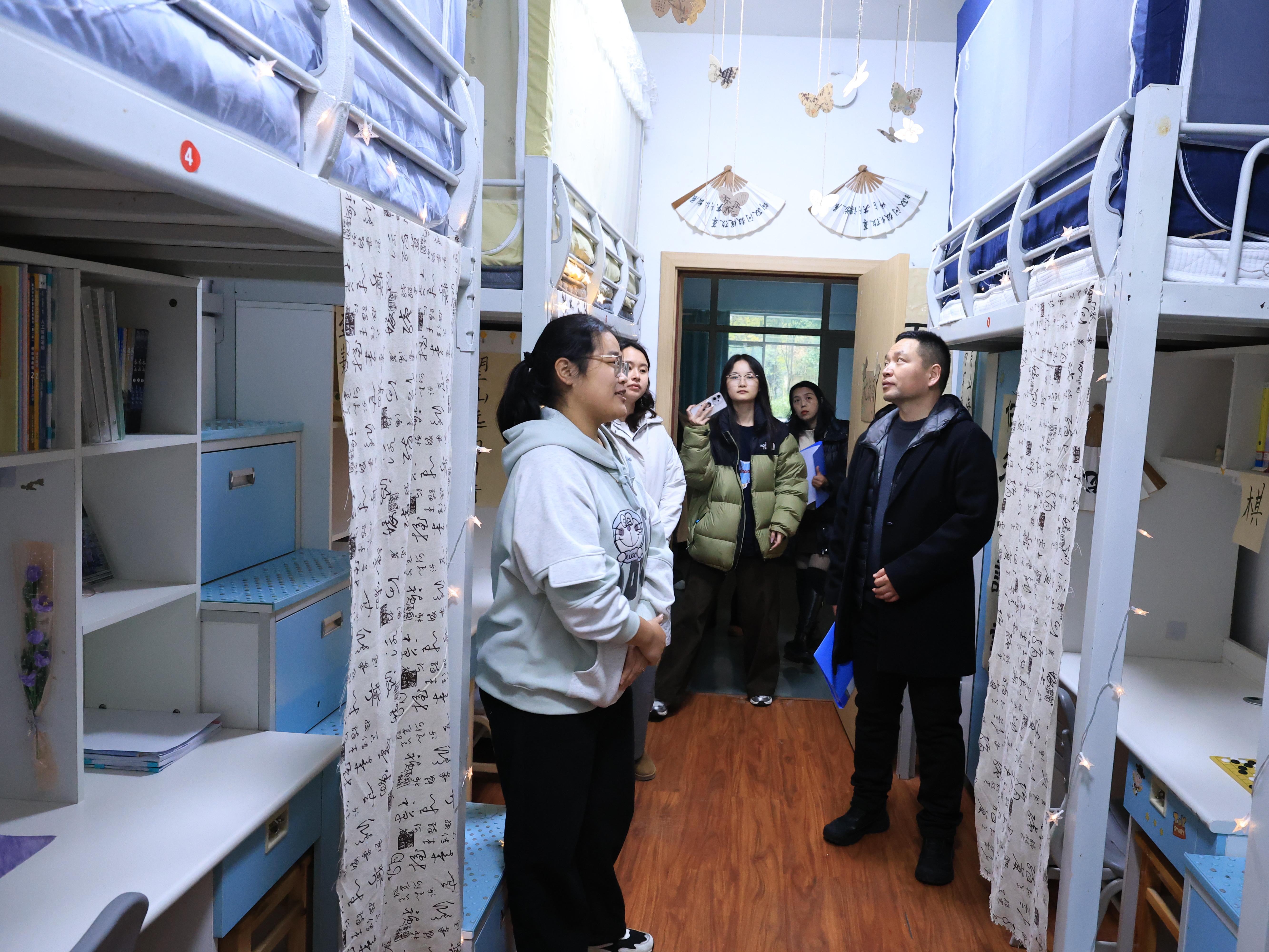 近日,我校第十一届学生社区美化大赛圆满落幕。本届大赛以“沐‘寓’学风 ‘寝’润书香”为主题,设公寓、寝室双赛道,共计27个学生公寓、3057间学生寝室超1.7万名同学报名参赛。经激烈角逐,共计10个学生公寓、15间学生寝室脱颖而出晋级校级决赛。学校党政办公室、党委宣传部、后勤处、资产处、保卫处、学生处相关负责人担任决赛评委,分赛道进行短视频评比和实地评比。