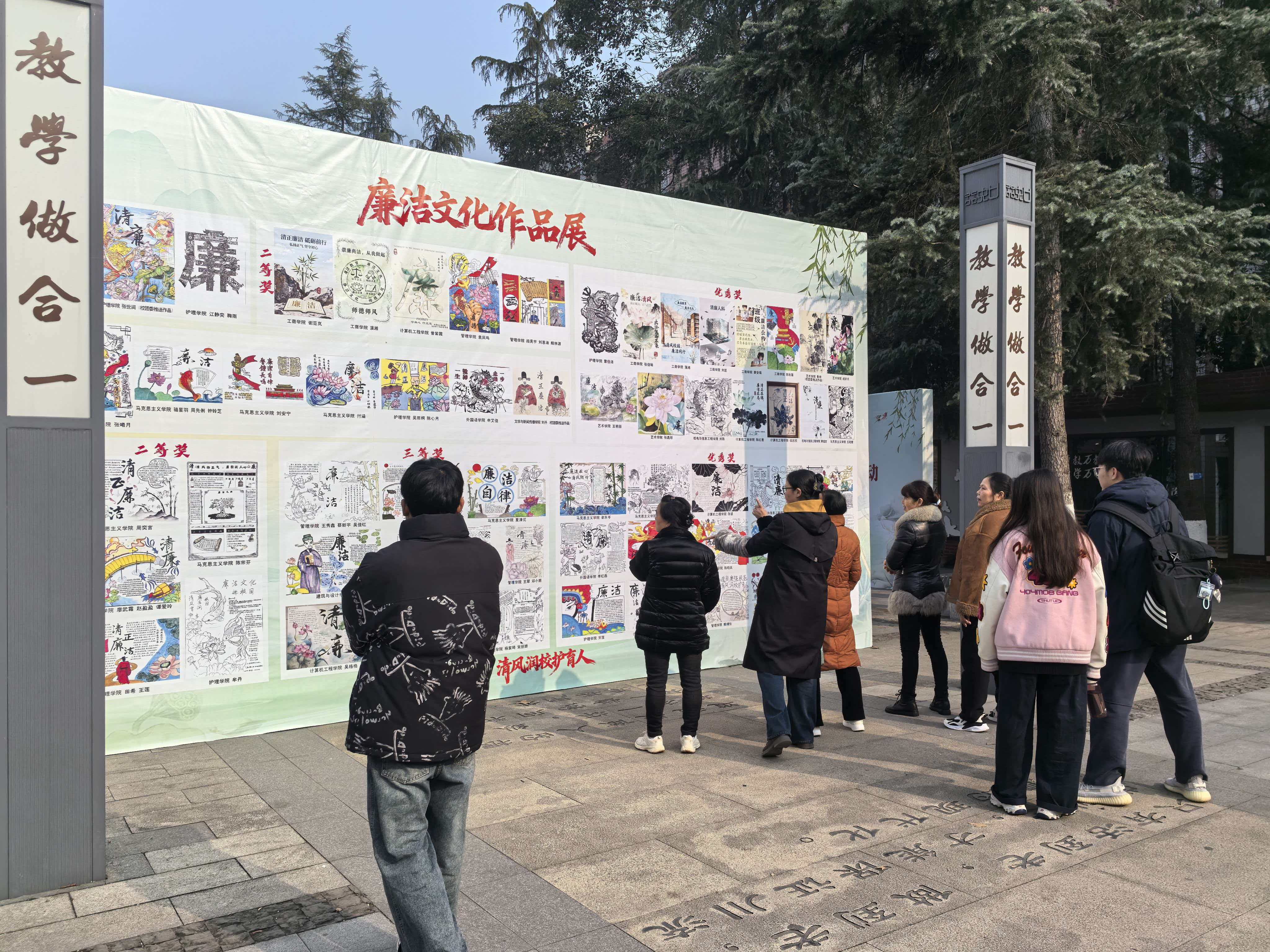 活动吸引了广大师生踊跃观展。行知广场上,往来师生纷纷驻足,在艺术作品前品味赏析,在成果展板前交流讨论,在潜移默化中接受廉洁文化的熏陶。