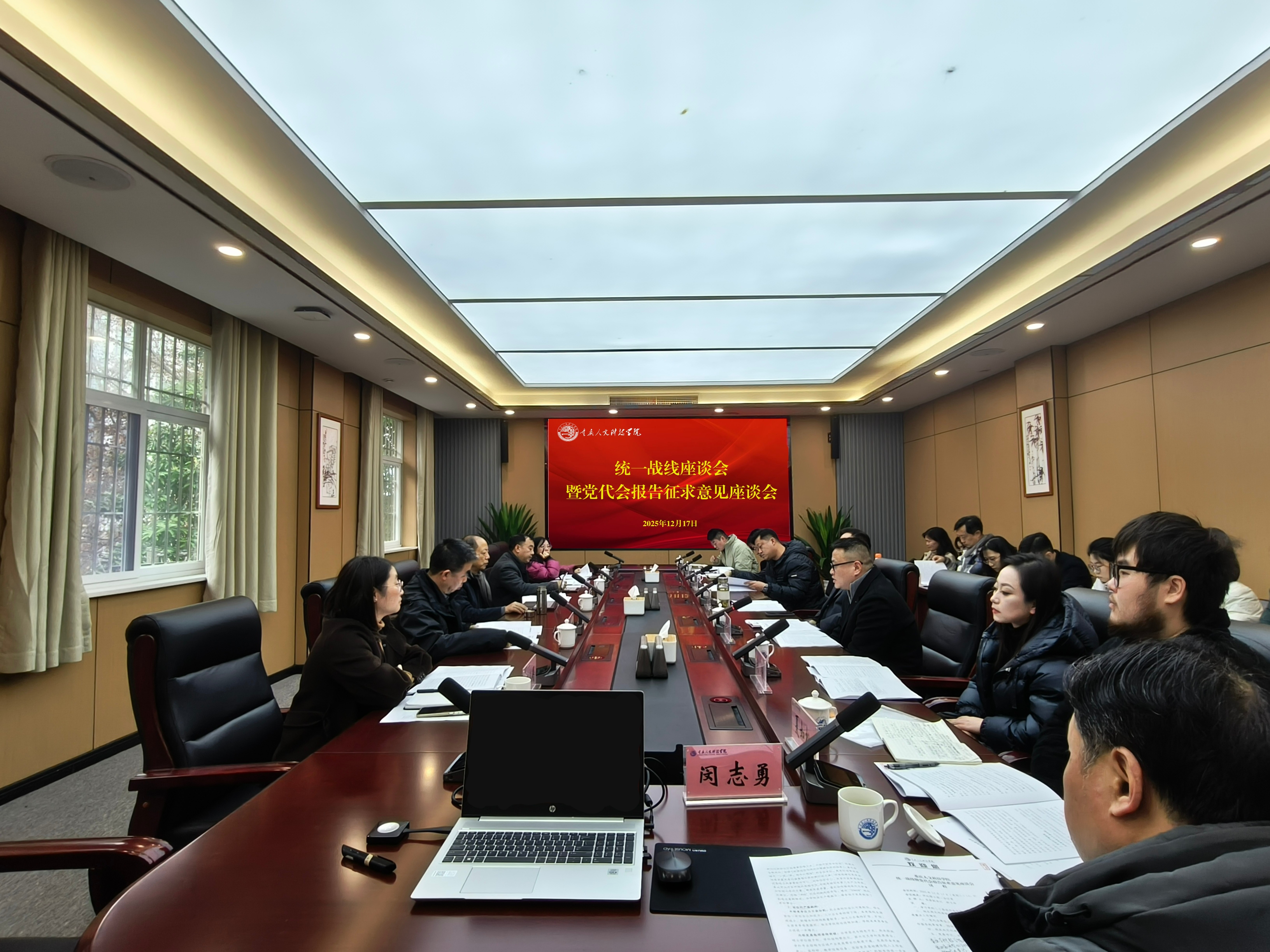 12 月 17 日下午,学校在怀远楼第一会议室召开统一战线座谈会暨党代会报告征求意见座谈会。校长周光明、党委书记彭体春、党委副书记舒卫华,党政办公室、纪委办公室、党群工作部、党委统战部负责人和18名学校统一战线成员代表参加座谈。会议由舒卫华主持。