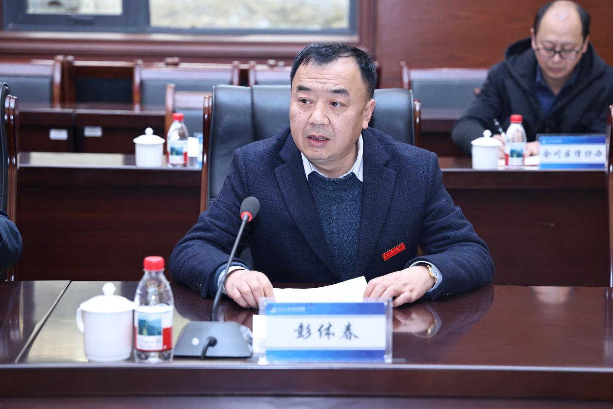 大会分两个阶段进行。首先,彭体春代表学校党政班子及全体师生,对莅临会议的领导、专家表示热烈欢迎与诚挚感谢。他详细介绍了学校的办学沿革、学科建设、师资力量与发展成果,重点阐述了学校法学专业在产教融合、实践教学、校地合作等方面的探索与成效。他表示,学校将以此次座谈会为契机,深化与合川区法学会及政法单位的合作,把法治服务站点的实践案例转化为教学资源,助力学生成长成才,为平安合川、法治合川建设贡献力量。