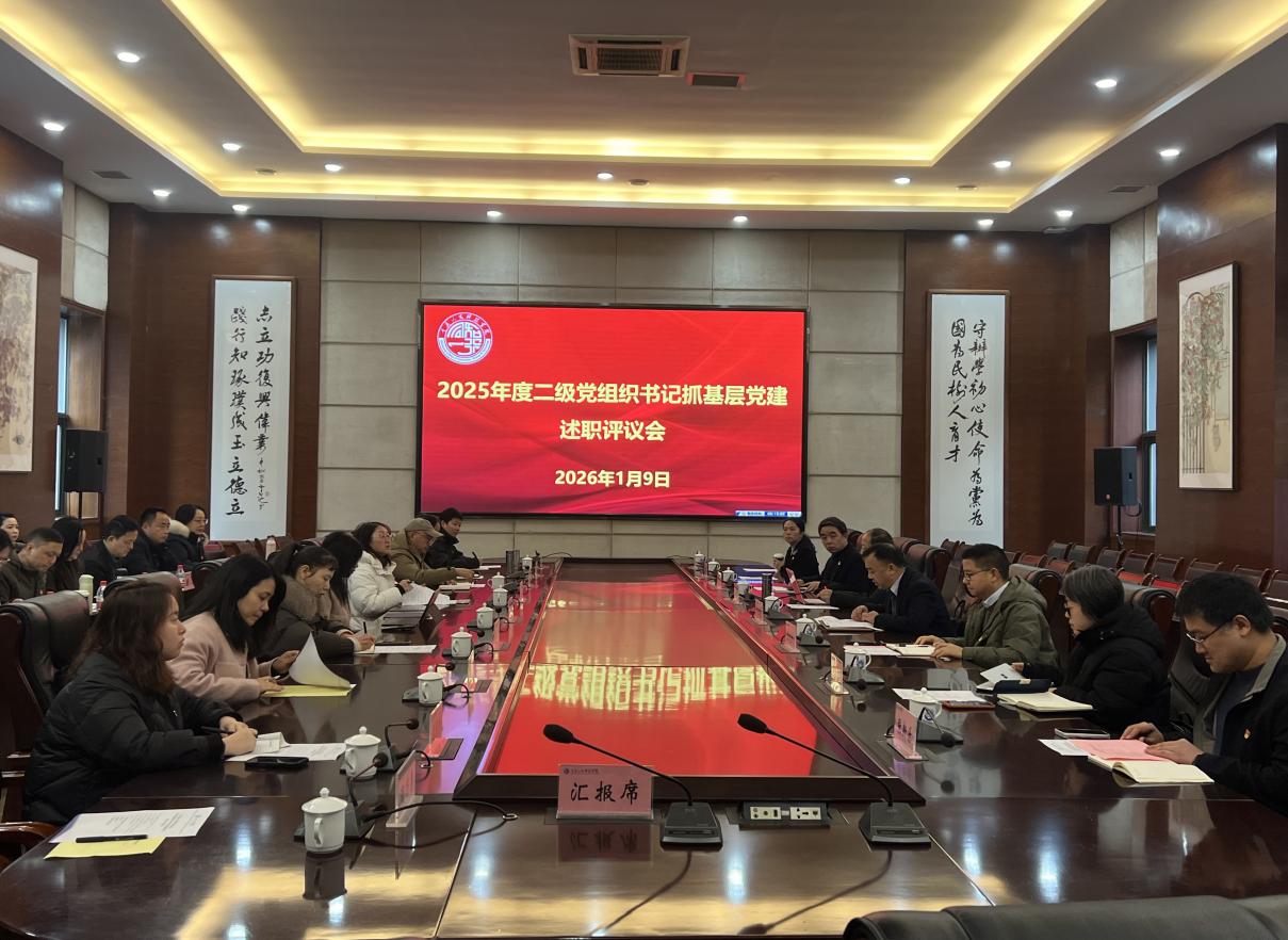 2026年1月9日上午,学校在会议中心召开2025年度二级党组织书记抓基层党建述职评议会。学校党委委员、党员校领导、党委职能部门负责人、二级单位党组织书记、副书记、“两委员一代表”等参加会议。会议由党委书记彭体春主持。市委教育工委委派重庆艺术工程职业学院党委组织部副部长黎恋秋列席会议。