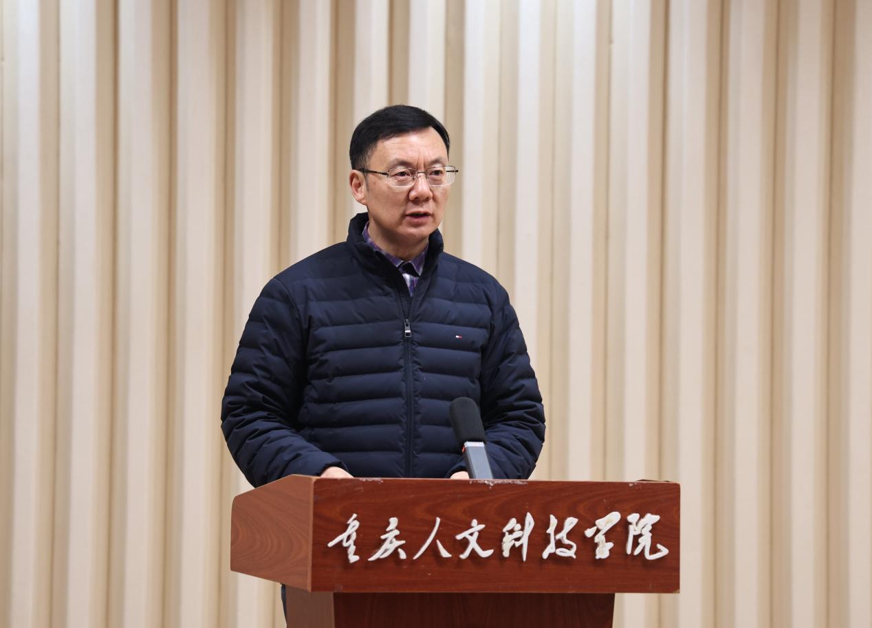 校长周光明从三个方面发表讲话:一是回顾过往。2025 年全校上下拼劲十足取得了亮眼成绩,值得充分肯定,要清醒认识到其他方面存在的短板。二是聚焦当下。寒假三件大事必须抓实抓牢,确保工作不断档。一要筑牢安全防线;二要做好工作衔接;三要强化服务保障。三是展望未来。2026年要全面深化改革,做好落实学校第二次党代会精神的良好开局,锚定争创重庆民办高校 “二十个第一” 目标,重点抓好教育教学改革、科研创新合力、引人育才改革、国际化教育和治理效能提升五大任务,奋力打造区域特色鲜明的一流应用型民办大学。
