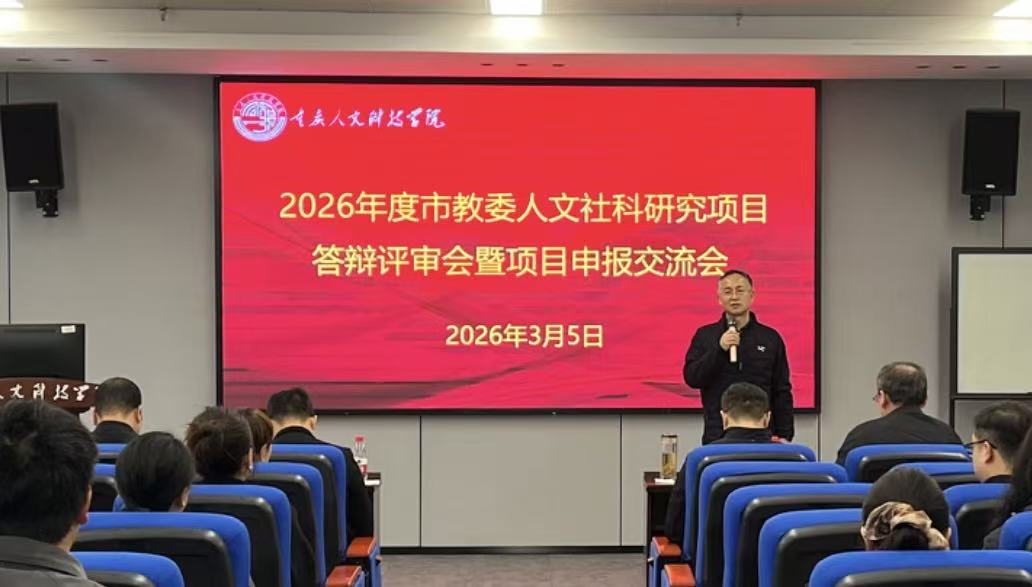 3月5日,学校在行知楼图书馆报告厅组织召开了申报市教委2026年度人文社科研究项目答辩评审会暨项目申报交流会。会议特邀西南大学胡晓东教授、兰剑教授,重庆邮电大学李俊斌教授、重庆交通大学粱喜教授、重庆理工大学谭建伟教授等5位专家莅临指导。校长助理双海军、科研处副处长张莹、各项目申报负责人及教师代表等50余人出席。会议由张莹主持。