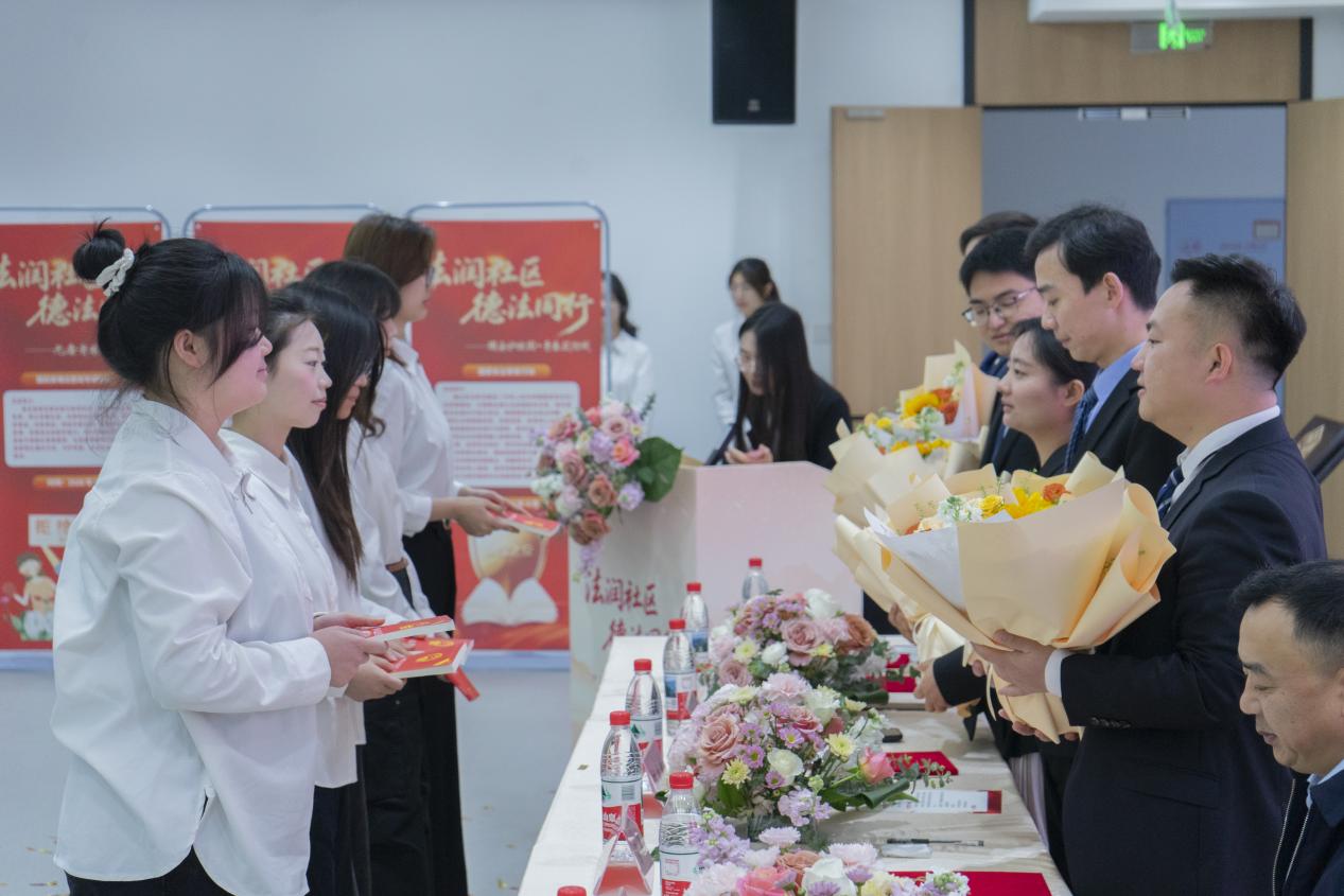 活动现场,副院长李燕宣读了“校外实践导师”及结对学生名单。党委书记彭体春为受聘律师颁发“校外实践导师”聘书。在随后举行的拜师仪式上,结对学生向导师献花致意,导师回赠《中华人民共和国宪法》等书籍,寓意法治精神薪火相传、德法兼修知行合一。