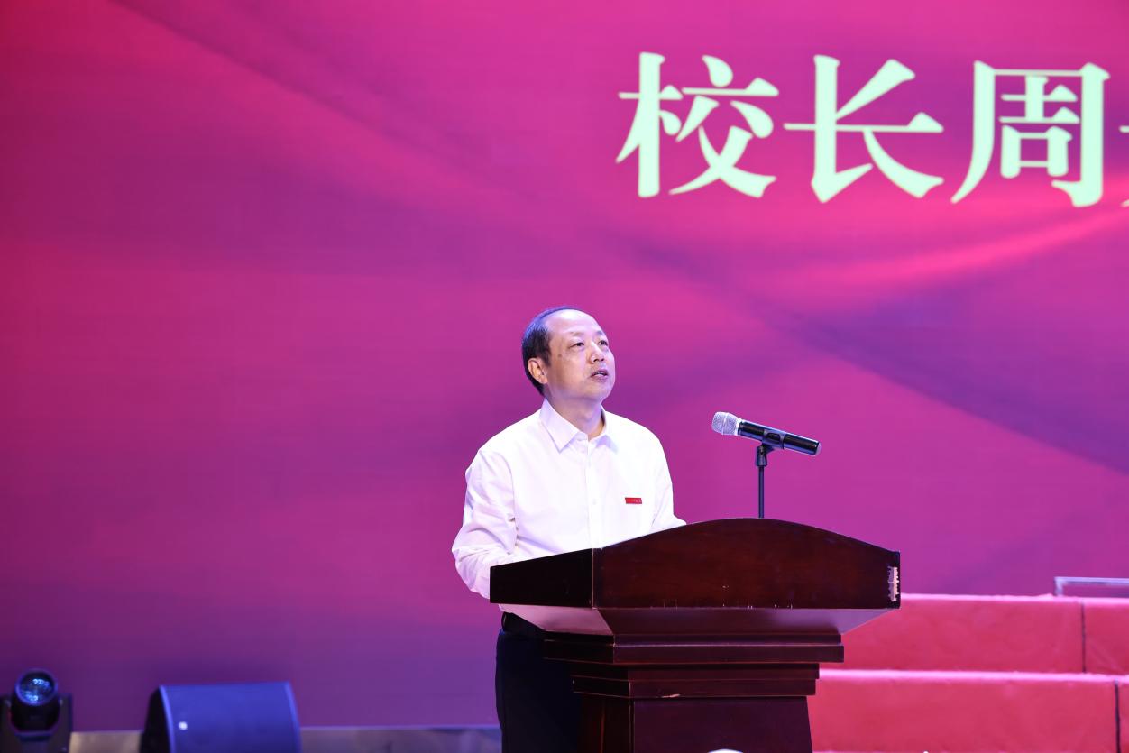 校长周光明作总结讲话。他指出,校歌是学校流动的历史、精神的回响,凝聚着学校的办学理念、文化底蕴与师生情怀,是校园文化的核心载体。他向所有为校歌创作、打磨付出努力的创作者、专家及师生表示感谢,并强调,校歌是生动的思政课、立体的校史书,承载着“厚德笃行、求真创造”的校训精神与陶行知先生的教育初心。
