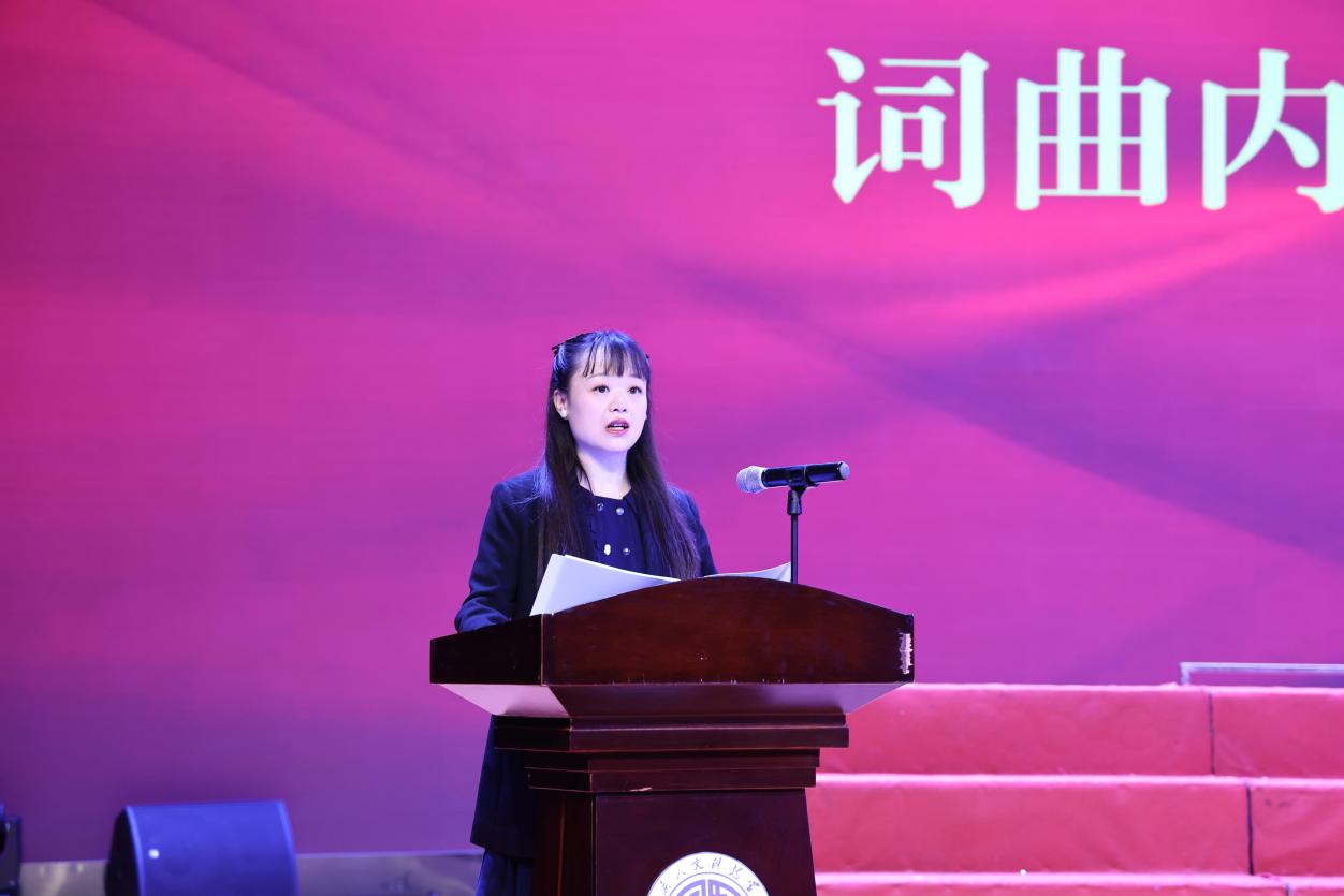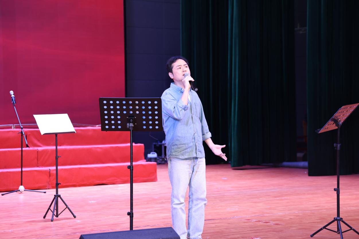 在词曲内涵解读环节,词作者段茂升老师、曲作者曾帧老师先后上台,分享校歌创作渊源历程及歌词意蕴与谱曲创作思路理念。
