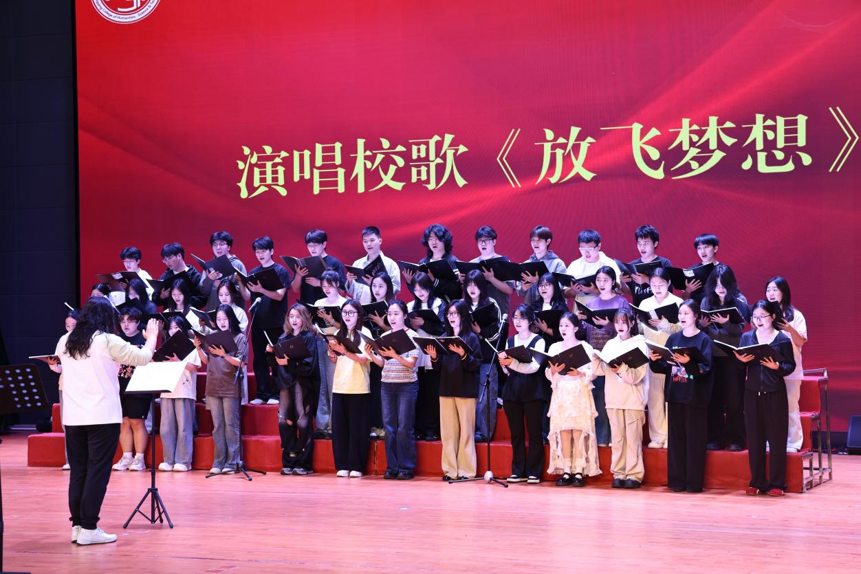 随后,校歌演唱环节正式开启,师生们以男生独唱、女生独唱、集体合唱、男女领唱+合唱等多种形式倾情演绎。悠扬婉转、昂扬奋进的旋律回荡全场,真挚动人的歌声饱含青春力量,淋漓尽致地展现出校歌的艺术魅力与精神内涵,让现场师生沉浸式感受校歌的独特韵味,赢得全场阵阵热烈掌声。