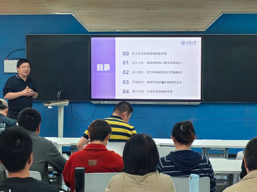 为深入学习“项目制课程”建设,革新教学模式,4月22日下午,学校在朝晖楼1407和1409教室同步举行“项目制课程”教学改革专项研修第二场培训,分别邀请重庆大学国家卓越工程师学院副教授刘骥、航空航天学院副教授魏榛两位专家授课,人工智能与信息安全学院、机电工程学院、电子信息与通信工程学院、设计工程学院和数字传媒与创意学院等五个学院教学副院长、基层教学组织负责人和骨干教师共70余名教师参加。