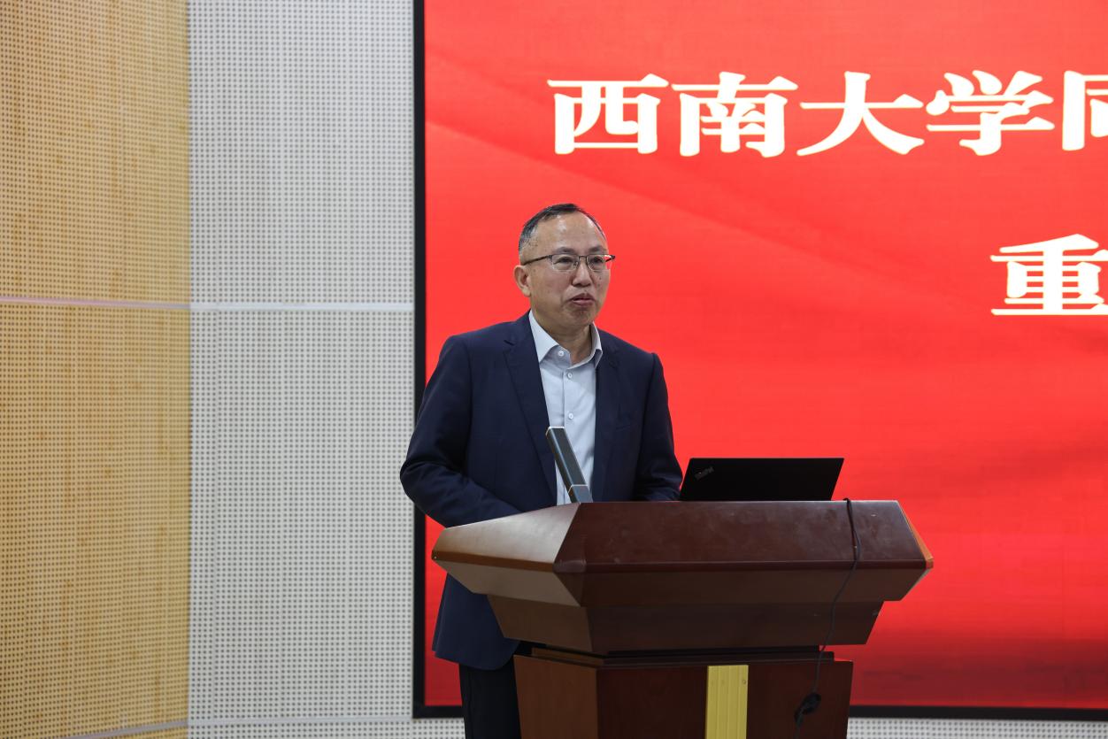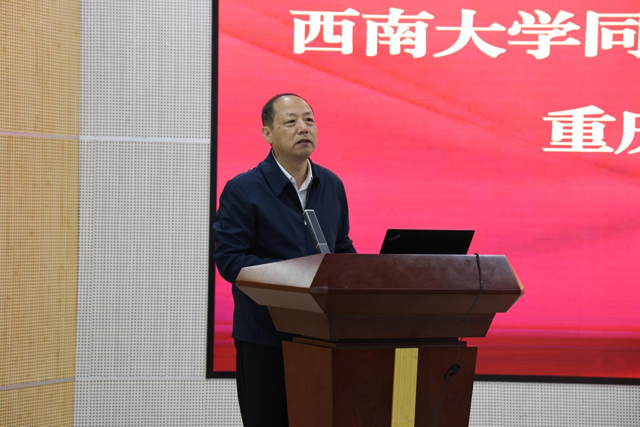 为深入贯彻人才强校、内涵发展理念,加强师资队伍与管理队伍建设,助力教职工学历提升与职业成长,实现个人进步与学校发展同频共振、双向奔赴、互利共赢,4月23日上午,学校在卓立楼卓越厅举行西南大学同等学力申硕项目专题宣讲暨动员大会。校长周光明作动员讲话,西南大学继续教育学院院长程龙、副院长刘永凤、对外合作部部长汪明东应邀出席,全校140余名教职工参会,会议由干部人事处处长蒋厚兰主持。