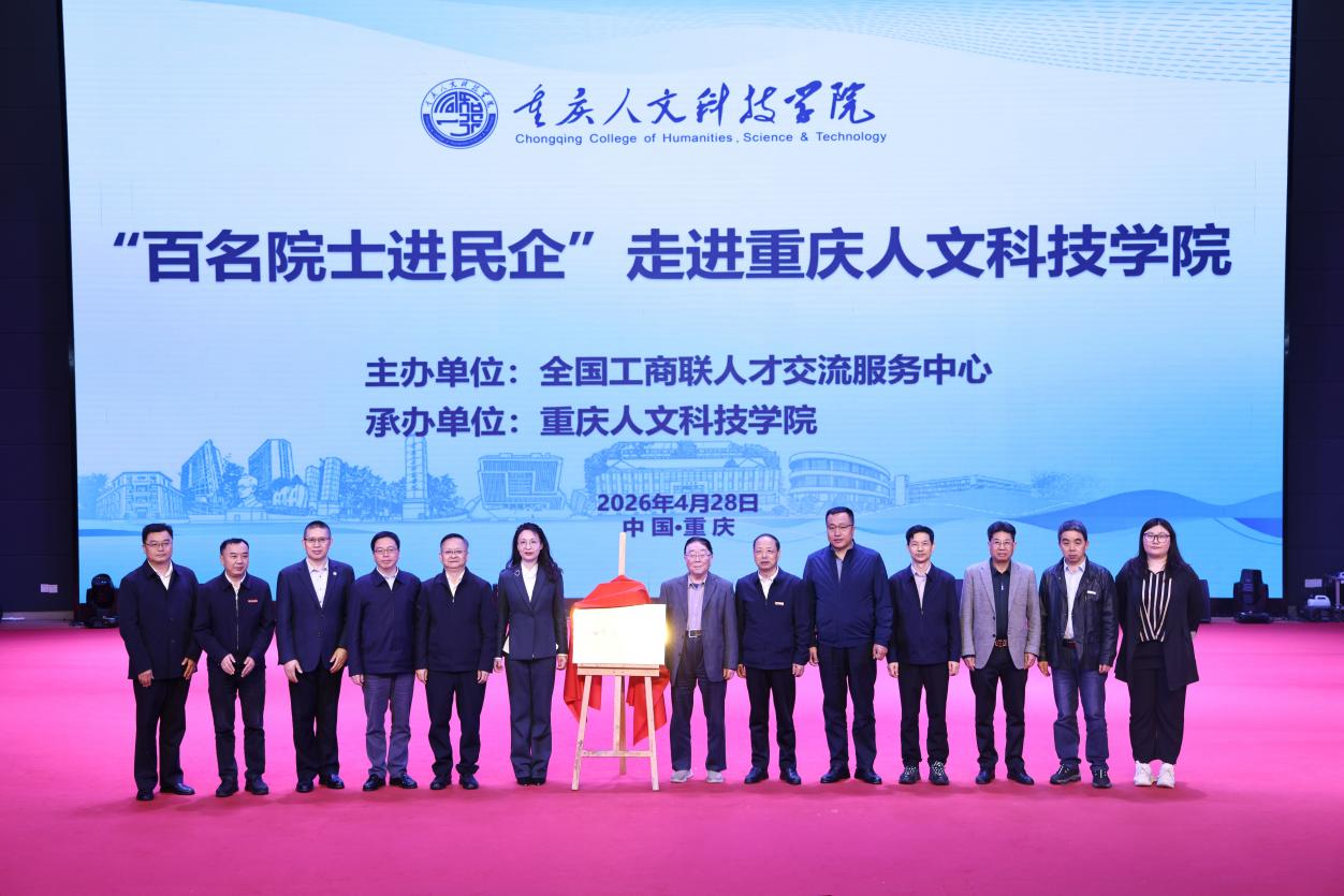 4月28日,“百名院士进民企”走进重庆人文科技学院暨“院士专家科技服务站”揭牌仪式在学校行知艺术中心隆重举行。中国科学院院士、放射化学家柴之芳,全国工商联人才中心,重庆市工商联,合川区委、区政府、区教委、区科协相关领导,以及学校全体校领导、副科级以上干部、师生代表300余人共同参与本次活动。活动由学校副董事长、执行校长曹勇主持。