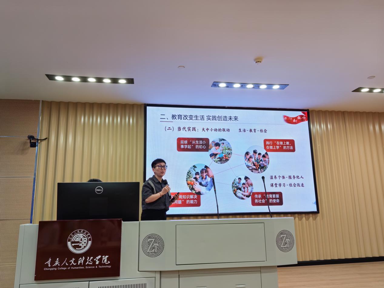 10月15日上午,学校马克思主义学院(政治与法律学院)在朝晖楼1302教室举办“大中小幼同上一堂思政课”教学展示活动。来自合川巴蜀幼儿园、巴蜀小学及本校大中小幼学段的60余名师生同聚一堂,围绕陶行知先生“生活即教育”思想展开跨学段互动课堂。马克思主义学院(政治与法律学院)党政班子、合川巴蜀幼儿园教师孙侨、合川巴蜀小学教师袁梦诗意参加。