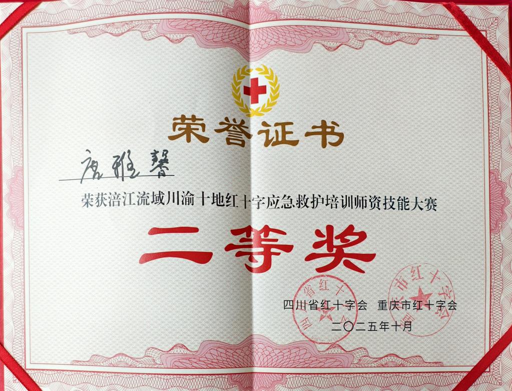 10月16日,由四川省红十字会、重庆市红十字会联合主办的涪江流域川渝十地红十字应急救护培训师资技能大赛决赛在绵阳举行。我校护理学院教师唐雅馨获得二等奖。