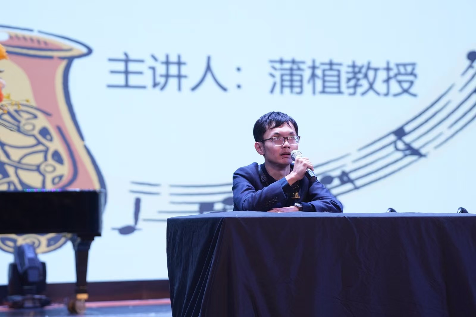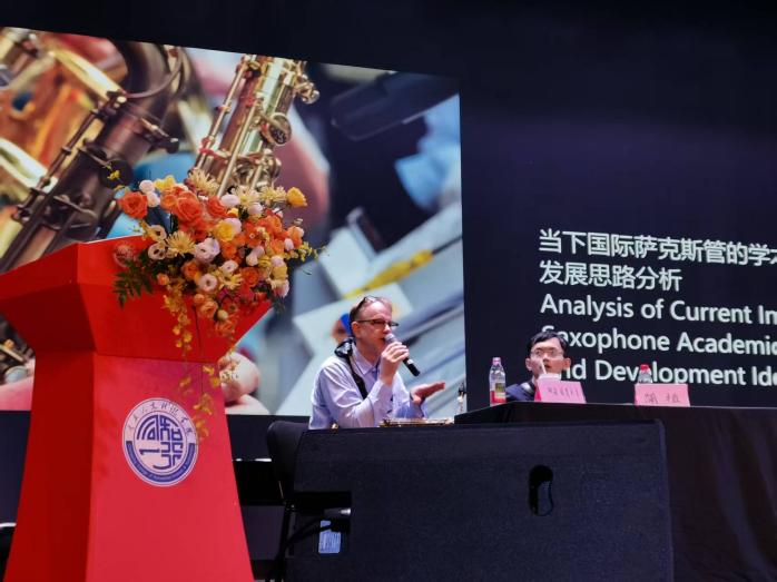 随后,蒲植博士带来了《中美古典萨克斯管教学与演奏概念性差异分析》的讲座。他从教学体系的对比角度出发,深入剖析了中美萨克斯教育体系的差异。在此基础上,他提出了“技术为基、文化为魂”的先进教学理念,并详细分享了乐曲选择与训练方法等方面的宝贵经验。