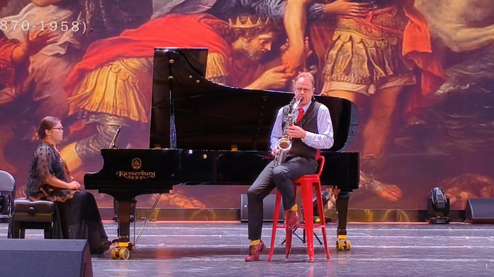 10月20日,艺术学院“国际音乐大师面对面”系列活动迎来了国际萨克斯协会主席、荷兰阿姆斯特丹音乐学院教授阿诺·博恩坎普(Arno Bornkamp),他携手合作艺术家美国南俄勒冈大学蒲植博士、新加坡南洋艺术大学钢琴家Cecilia Ratna,在艺术学院开展了为期一天的学术讲座、大师课及音乐会。活动吸引了校内外师生、音乐爱好者及媒体代表踊跃参与。
