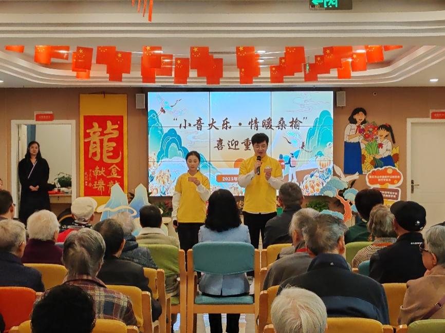 2025年10月29日,在中华民族传统敬老节日重阳节到来之际,“小音大乐・情暖桑榆”喜迎重阳活动在童家桥街道养老服务中心温情启幕。本次活动由重庆市自然健康疗法研究会、中欧校友女性领导力联盟主办,重庆市自然健康疗法研究会音乐疗愈专业委员会和重庆人文科技学院学前教育学院技能教研室承办,学前教育学院奥尔夫工作室负责本次活动具体实施。工作室谭阿斯和楚晶两位老师带领工作室全体学生成员,以音乐为桥、以关爱为核,为现场长者们打造了一场兼具欢乐与温暖的重阳盛宴。