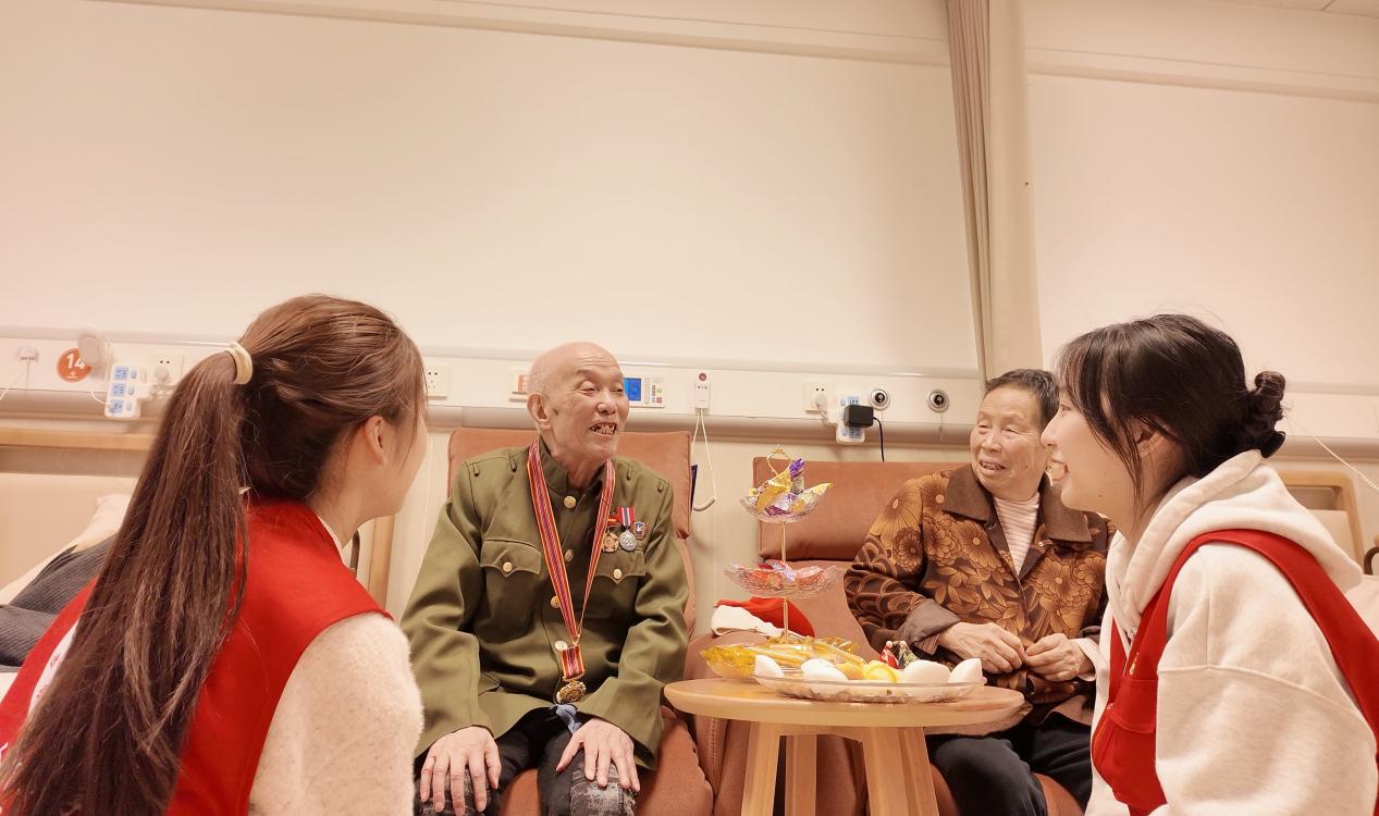 活动期间,“小先生”代表还前往康养中心休养区,慰问92岁的抗美援朝老兵平旭光。看到年轻党员胸前的党徽,平爷爷格外亲切,将当年奔赴战场、保家卫国的峥嵘往事娓娓道来。在交流尾声,平爷爷叮嘱大家:“你们要珍惜现在的好日子,永远跟党走!”简短的话语里,既有老英雄对岁月的追忆,更饱含着对青年党员传承红色基因、坚守初心的深切期许。