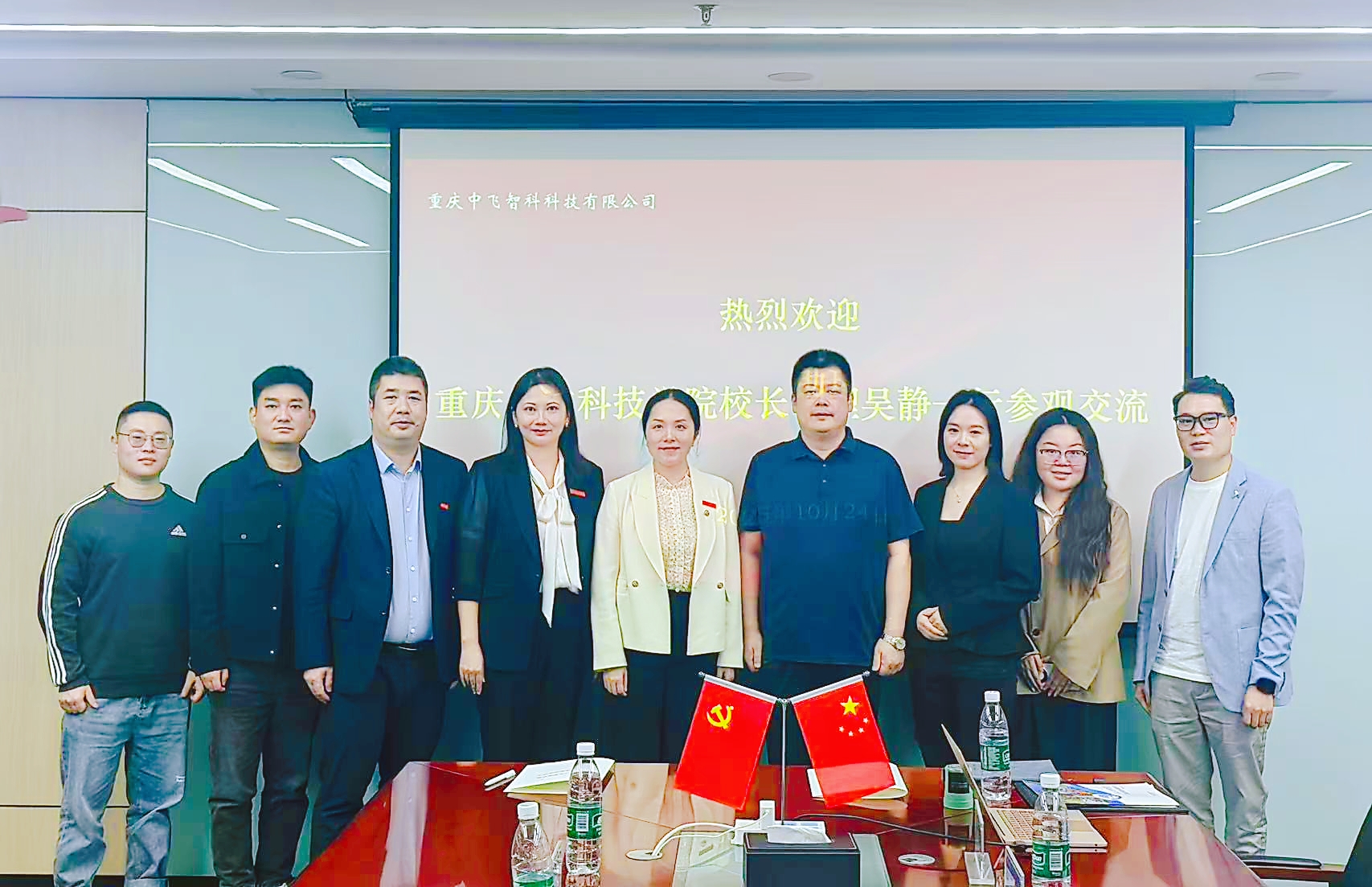 重庆菲利信科技有限公司副总经理孔明对吴静一行的到来表示热烈欢迎,并带领参访人员对基地建设运营模式、运营现状以及整体目标等方面进行了全面了解。随后吴静一行与重庆菲力信科技有限公司、重庆中飞智科科技有限公司负责人进行了座谈交流,深入了解企业人才需求、产业发展方向和岗位结构变化,积极推介学校人才培养成果,并在实习实践、订单培养、科研合作等多领域达成初步合作意向,现场与重庆菲利信科技有限公司、重庆七颜品牌设计有限公司等多家企业签订毕业生就业基地协议,实现从“单纯拓岗”向“协同育人”的转变。