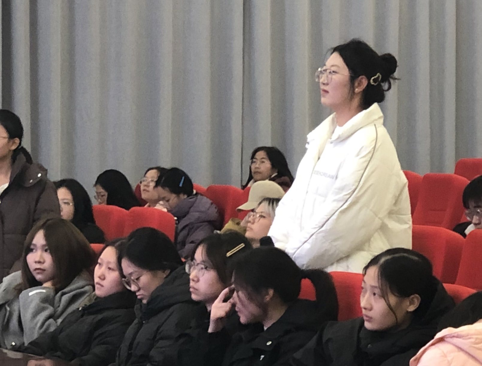 在互动环节,与会学生围绕“养老护理核心能力构建”“智慧养老技术融合”等议题踊跃提问,蔡汶栖详尽解答,现场交流热烈,学术氛围浓厚。