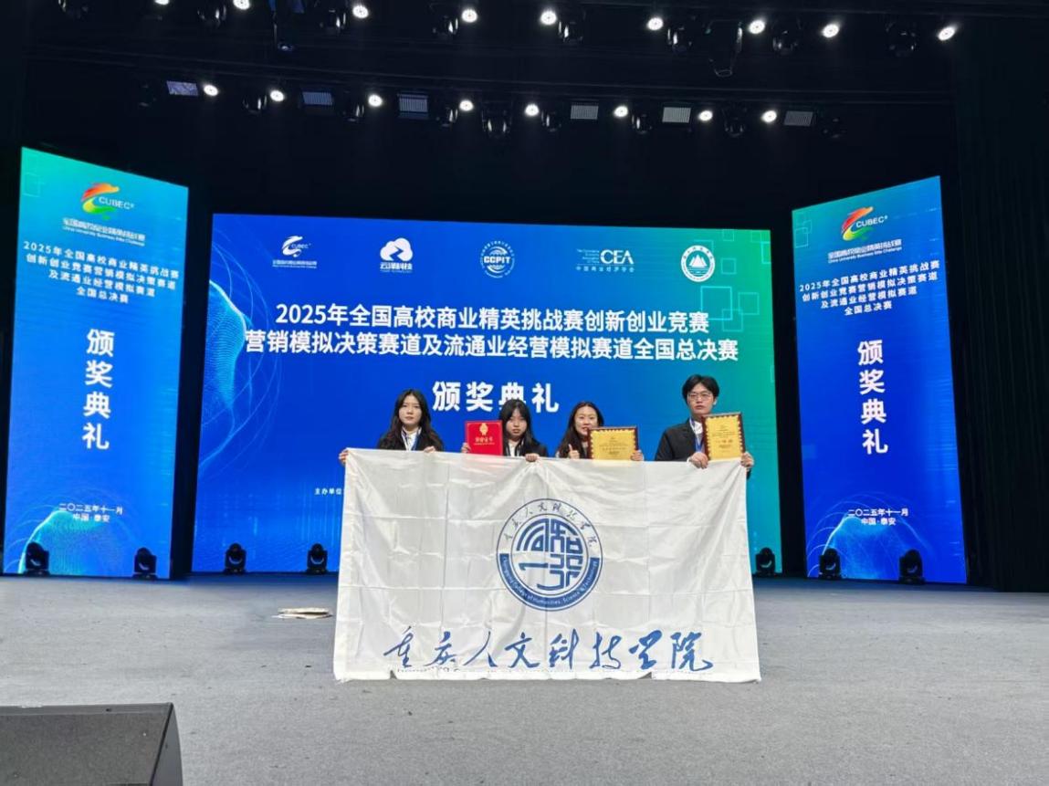 近日,由中国国际贸易促进委员会商业行业委员会、中国商业经济学会主办的2025年全国高校商业精英挑战赛创新创业竞赛流通业经营模拟赛道全国精英赛圆满落幕。本次赛事自启动以来吸引近400所高校、1200余支团队参赛,是国内商科领域具有影响力的高水平竞赛之一。经过激烈角逐,管理学院参赛团队凭借扎实的知识储备、严密的经营分析思维和沉稳自信的临场表现,斩获全国总决赛一等奖,并在全国精英赛中荣膺精英奖。凭借突出组织成效,学校同时获评“最佳院校组织奖”,并受邀参加2026年内地与港澳地区数字经济创新创业竞赛。