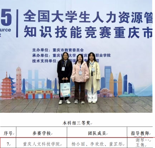 【喜报】管理学院学子在2025年全国大学生人力资源管理知识技能竞赛重庆市赛中喜获佳绩