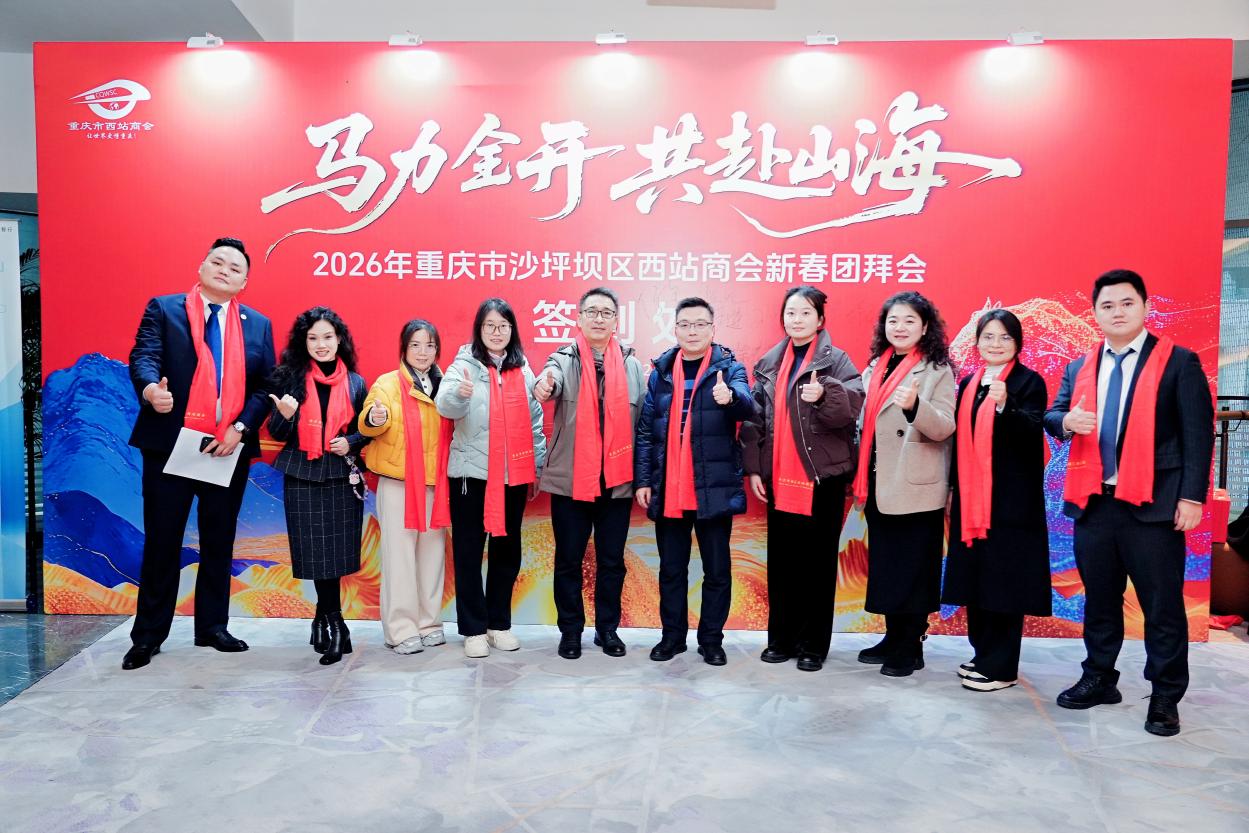 2026年1月16日下午,重庆市沙坪坝区西站商会新春团拜会在喜庆祥和的氛围中隆重举行。经济管理学院班子成员和教师代表应邀参加,与沙坪坝区工商业界代表齐聚一堂,共贺新春、共话合作、共谋发展。