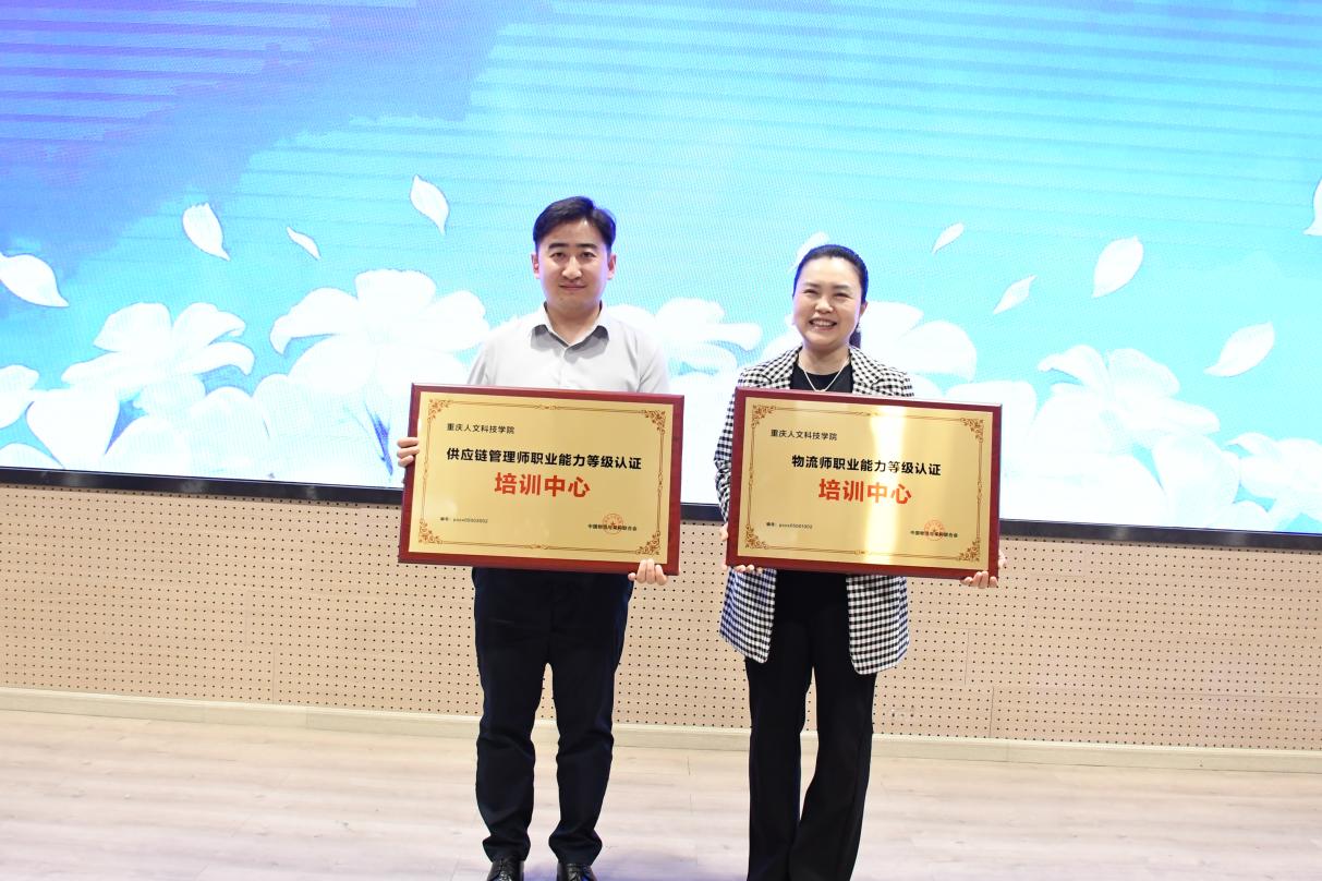在全体嘉宾与师生的见证下,学院与重庆渝之眼文化旅游发展有限公司、重庆企优帮税务咨询有限公司、中升集团宝马品牌、中建装饰集团西南公司、重庆海思源科技有限公司、中国物流与采购联合会、中信建投期货等多家企业签署合作协议。签约结束后,中国物流与采购联合会向学校授予“供应链管理师及物流师职业能力等级认证培训中心”牌匾,标志着双方在职业能力认证与人才培养方面迈出实质性一步。