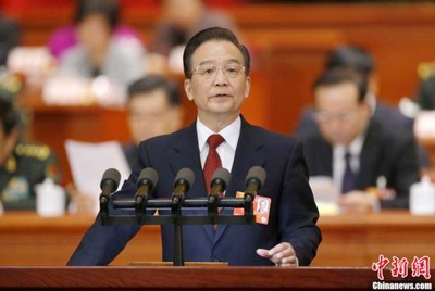 ——温家宝在政府工作报告中,首先回顾了过去五年的工作。