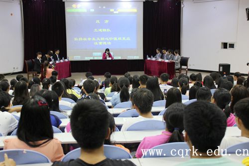 9月25日下午,图书馆报告厅热闹非凡。由共青团重庆人文科技学院委员会主办的“弘扬社会主义核心价值观更应注重法治还是德治”明辨会在此举行。校团委书记朱宇,政治与法律学院有关负责人等出席了本次明辨会。