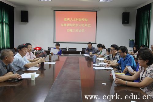 周宏光指出,创建民族团结示范高校工作分两个阶段。第一阶段要办好民族节活动,第十一届民族艺术节系列活动月,时间从10月底起,配合市民族团结进步宣传周活动;要成立重庆人文科技学院民族团结进步促进会;各单位要建立少数民族维权站等。第二阶段为活动验收阶段,要把学校民族团结进步工作系统地整理出来,形成“一册一栏一片”,即反应我校民族团结进步工作的一本宣传册、一个宣传栏、一部宣传片,以及系统的汇报材料。