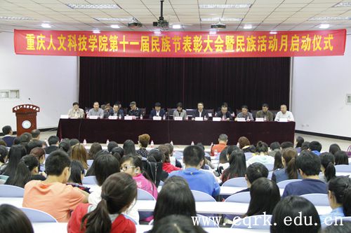 10月27日,我校在图书馆报告厅隆重举行了第十一届民族节表彰大会暨民族活动月启动仪式。中共合川区委常委、统战部部长卢波,区民族宗教事务局局长庹平,区政法委副书记余正中,区教委副主任莫智红,草街街道党工委书记陈凯,区公安局治安支队支队长张祥强,草街大庙村党支部书记周中华,重庆人文科技学院党委书记张卫平,校长何向东,校领导陈金玉、周宏光、李长泰、舒卫华、税国洪、李渤川出席了大会。会议由副校长周宏光主持。