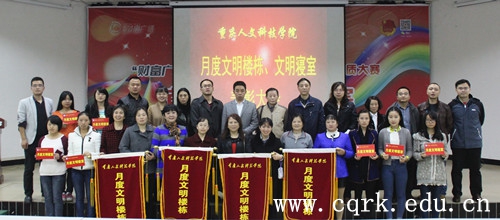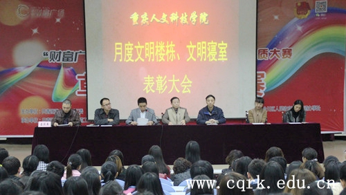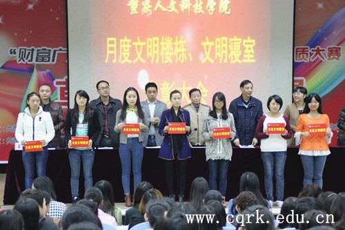 本次表彰大会是我校建校以来首次召开的月度文明寝室、文明楼栋表彰大会,这表明学校对加强学生寝室建设的重视。同时,本活动将以月为周期进行,月度文明寝室的重要性也将被逐渐强化。本次大会表彰的详细名单将在重庆人文科技学院官方微博中公示。开展文明楼栋及寝室的评比活动,使同学们懂得了素质培养,从卫生做起;文明修身,从寝室做起。同时,这展示了学生楼栋及寝室的精神面貌和加强了思想素质培养的观念。