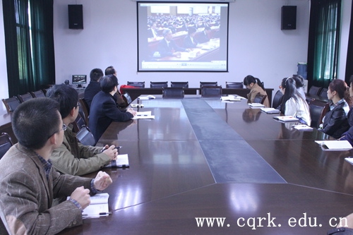 会上,机关党总支书记何光勇组织参会人员一起观看了中共第十八届中央委员会第四次全体会议公报视频,集中学习党的十八届四中全会精神和习近平总书记有关重要讲话精神,学习中共重庆市委、市教委有关会议精神;传达了张卫平书记在10月29日党委中心组学习会议暨党总支书记例会上的重要讲话精神。他要求,各党支部书记要把会议精神传达到每位党员,组织会议、文件精神的学习,发挥基层党组织的作用。要敢于担当,以过硬的作风和本领,做好工作,推动学校发展。要提升思想道德素质。