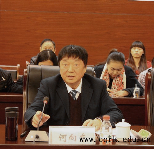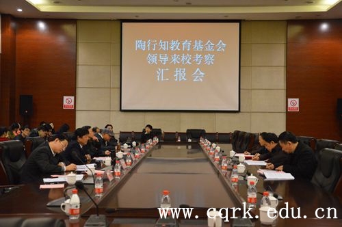何向东首先对陶行知教育基金会领导致以诚挚的欢迎,他对我校办学情况做了简要汇报。他说道:“我校办学有三大特色,一是“学陶、师陶、研陶、弘陶”。我校在这方面条件良好,得到中国陶研会以及重庆市陶研会和各高校的认可,我们要争取进一步改进,将这一特色做大做强;二是艺术教育,我校艺术学院、建筑与设计学院多次获得国家级奖项;三是民族教育,我校于2005年开始招收少数民族预科生,对少数民族学生的管理十分细致,也多次获得荣誉。”他指出,我校在申办中国陶行知研发培训中心方面有良好的条件:一是良好的校内基础条件,我校立陶具有可证的地理特质、可喜的丰硕成果、可靠的组织保障,《陶学》成为我校立校之基、强校之本、创特之魂;二是得天独厚的资源优势,‘凤凰山下行知路,陶圣传奇天下殊’,学校经过10多年步“行知路”的探索,已经构建成了“立陶创特”的实验模式。何向东表明,我校设置中国陶行知研发培训中心的软、硬件环境十分优越,在交通条件、培训条件、人际条件方面都有具备。就双方力量而言,基金会知名度高,领导力量强,人际交往广;我校承办基础好,学校董事长李学春是全国政协委员,并多次获得表彰,学校有很多有名气的老师,我们还可以团结大批教育专家、名流。何校长还从培训对象、培训内容、培训时间、培训原则以及机构设置方面做了交流。