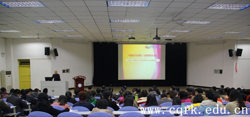 为深入学习宣传贯彻党的十八届四中全会精神及中共重庆市委四届五次全会精神,提高党务工作者和思政工作者的理论水平和工作能力,推动学校党建工作的创新发展, 我校于12月3日下午,在图书馆报告厅举办了“学习贯彻党的十八届四中全会精神及重庆市委四届五次全会精神”专题辅导讲座。校长何向东,校领导陈金玉、周宏光、李长泰、税国洪、李渤川,全校副科级以上干部以及全体辅导员参加了专题讲座会,讲座会由党委副书记舒卫华主持,政治与法律学院常务副院长李真主讲。