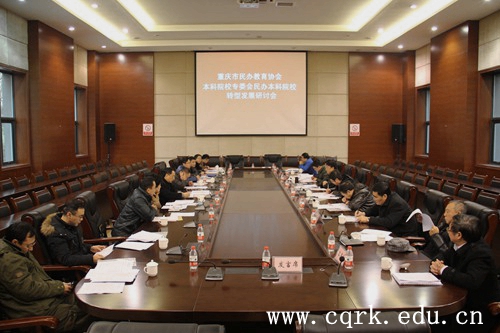 为深化民办本科教育教学改革,提高民办本科教育质量,加强院校间的合作与交流,推动民办本科院校的战略转型,12月18日下午,重庆市民办本科院校转型发展研讨会在我校会议中心正式召开。我校校长、本科专委会会长何向东,副校长李渤川,本科专委会秘书长何光勇,教务科研处常务副处长皇甫涛,以及重庆师范大学涉外商贸学院、重庆工商大学融智学院、重庆工商大学派斯学院、四川外国语大学重庆南方翻译学院、重庆邮电大学移通学院、重庆大学城市科技学院等相关负责人出席了会议,会议由何向东主持。