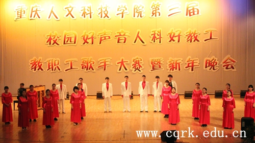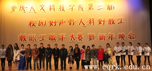 若老师放下了粉笔拿起了话筒,鸣唱一首首天籁之音,你是否感到惊喜?若老师换下了朴素的装扮穿上了华美的服装走到舞台中央,你是否激动不已?12月25日晚,我校教职工在新音乐厅为全校师生上演了这样一场极具冲击力的听觉与视觉的盛宴——重庆人文科技学院第三届校园好声音人科好教工、教职工歌手大赛暨新年晚会。党委书记张卫平,校长何向东,校领导陈金玉、舒卫华、李渤川与全校师生一起观看了晚会。