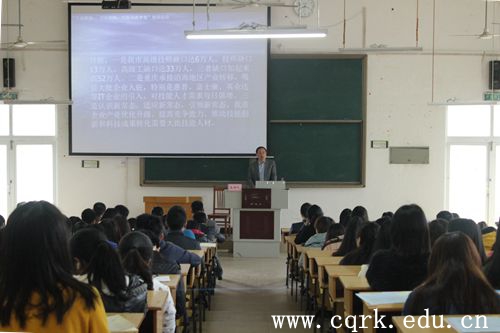 重庆市合川区人力资源和社会保障局专家谭汉明到场主讲,他以一段就业宣传短片开始了精彩的讲座。因为我校是应用技术型大学,技能型知识提升了学历证书与职业资格证书的重要性,所以我校毕业生考取职业资格证书成为了首要选择。谭汉明向学生们讲述了职业培训概念及特点,进一步增强学生技能就业,技能成才的认识。他还讲到如何做好高校毕业生的就业工作,创业培训补贴标准,企业职工岗前培训,实现建立三个机制的目标等问题,让现场学生对职业资格证书有了更直观的了解。