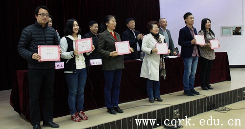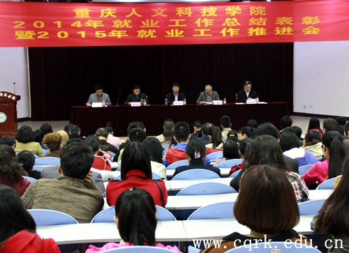 周宏光宣读了《重庆人文科技学院关于表彰2014年毕业生就业工作先进单位和先进个人的决定》。我校共6个二级学院被评为“先进单位”,其中,管理学院获得一等奖,艺术学院和外国语学院获得二等奖,建筑与设计学院、工商学院、机电与信息工程学院获得三等奖。顾硕等10人被评为“先进个人”。