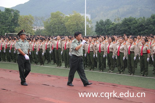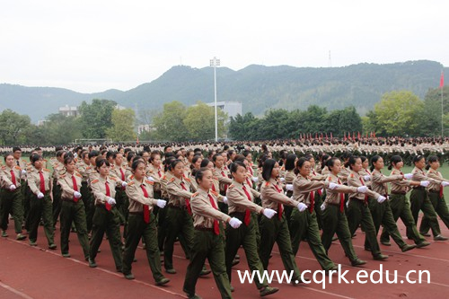 鸿雁高飞秋意浓,沙场点兵军歌亮。9月21日上午,我校2015级新生军训汇报表演暨总结表彰大会在大操场隆重举行。中国人民解放军重庆通信学院军事部主任、大校高志,重庆市教委体卫艺处副调研员严平,重庆警备区军训办主任、中校田其三,中国人民解放军重庆通信学院国防教育训练基地副主任、上校牟其标,我校校长何向东,校领导李渤川、陈金玉、舒卫华、税国洪、叶培德以及军训领导小组全体成员、各二级学院党政领导、机关各职能部门负责人出席了总结表彰大会,大会由常务副校长李渤川主持。