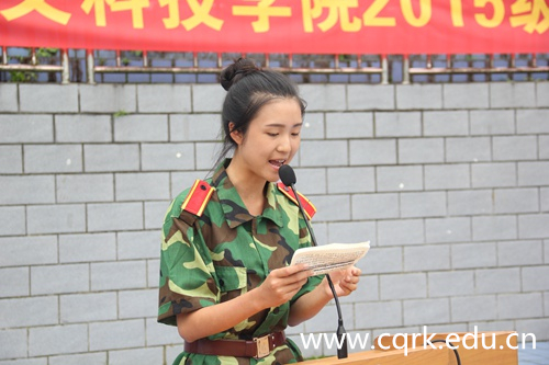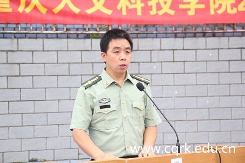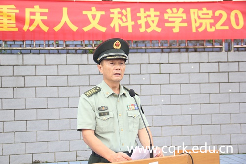 中国人民解放军重庆通信学院军事部主任高志大校讲话。他指出,军训工作是落实立德树人、推动实现中国梦的战略举措,是加强国防后备力量建设、促进实现强军目标的基础工程,是传承我军红色基因、巩固发展军政军民团结的重要途径,希望同学们继续关注国防,心系国家安全,将军训实践的成果植根于未来的学习生活中,时刻把“强国梦”、“强军梦”和自身理想追求统一起来,做到学会珍惜、学会感恩、学会自省,为实现中华民族的伟大复兴而奋斗。