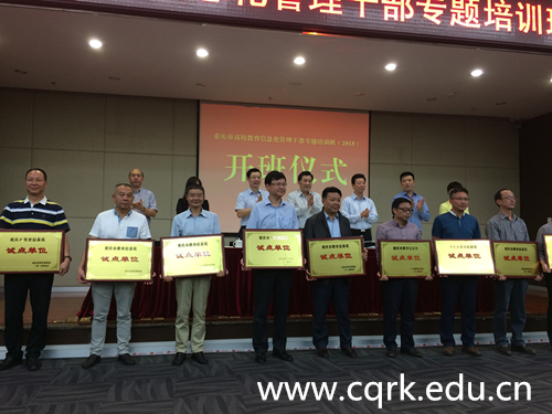 近日,在重庆市高校教育信息化管理干部培训班开班仪式上,市教委为重庆市教育信息化试点单位授牌,我校作为教育信息化试点单位接受了授牌。