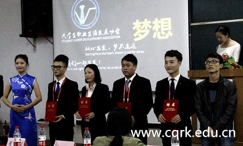 为培养与提高大学生自我认识和职业规划能力,尽快适应社会、提高职业技能,10月15日,我校在政治与法律学院1101教室,成功举办首届大学生职业生涯发展协会成立大典。学生工作与就业处翟晓川老师、中兴通讯信息学院副院长张景林、政治与法律学院党总支书记助理兼团总支书记韩亮、计算机工程学院党总支副书记胡海燕,以及政法学院相关辅导员参加了此次成立大典。