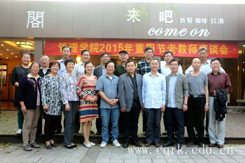 10月21日下午,在传统的“九九重阳节”之际,管理学院在木樨园“来吧”休闲室举办了重阳节老教师座谈会。管理学院副院长双海军、副院长禹华平、党总支副书记黄代蓥、院长助理蒋奉君与管院全体老教师进行了座谈,会议由禹华平主持。