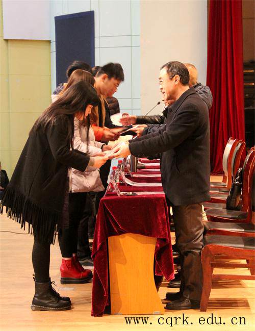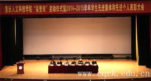 会上,常务副校长李渤川宣读了《重庆人文科技学院关于开展首届“荣誉周”活动的通知》,副校长叶培德宣读了《重庆人文科技学院关于表彰2014-2015学年度先进集体和个人的决定》。本次受表彰的先进班集体有32个、文明寝室144间、优秀学生干部382名、“创先争优”各类先进个人共1884名、优秀指导教师8位、先进个人55名,及大学生社会实践活动优秀组织、民族团结教育工作先进单位等奖项。随后,与会领导为获奖代表颁发了荣誉证书。
