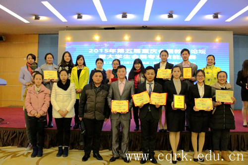 比赛当天,共有来自重庆市12所高校的会展专业的学生同台竞技。我校管理学院学生舒燕萍、谭尤念、郑婧儒、廖其海在会议服务组的比赛中荣获一等奖,童于婷、陈子安、刘家君、杨玲的参赛作品《健康生活,我行我‘素’》和乔玉、骆缘、朱赟、黎燕霞的参赛作品《火锅旅游节》分别获得创意策划组的二等奖、三等奖。舒燕萍等6名同学被授予“重庆市2015年度会展专业优秀大学生”称号。管理学院教师陈菲菲获得了2015年高校会展专业教师学术论文竞赛一等奖和“优秀指导教师”称号。