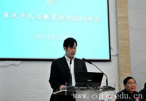 我校董事长、重庆市民办教育协会执行会长李学春代表协会作工作报告 |